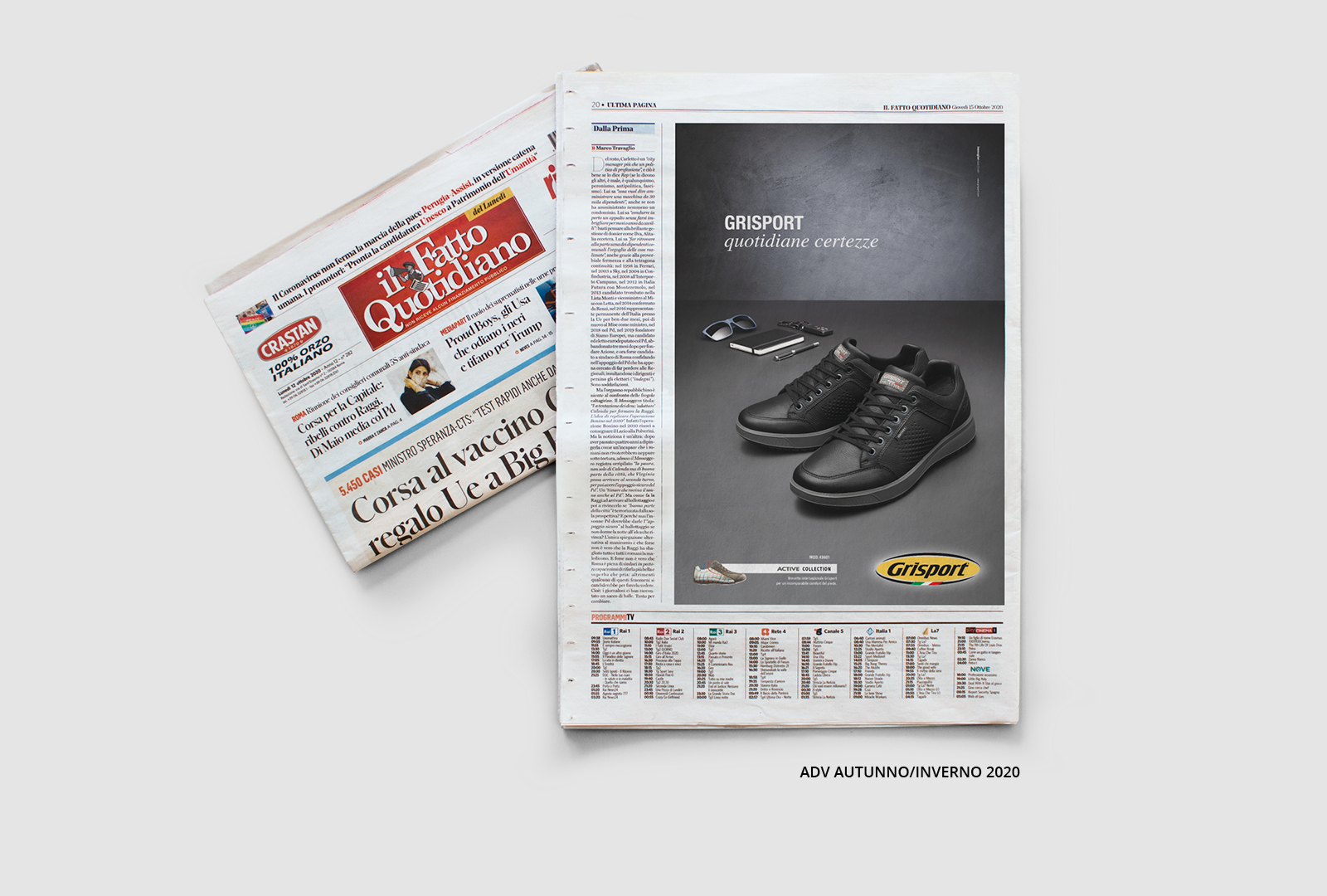 Rinnovo della campagna pubblicitaria per l’anno 2020 da declinare per mensili e quotidiano nazionali, per la televisione nazionale e per banner web su portali di settore. Nel percorso di rinnovo della collezione “City” di Grisport, la richiesta era rafforzare la certezza di un bisogno nella quotidianità nel pubblico maschile in target.